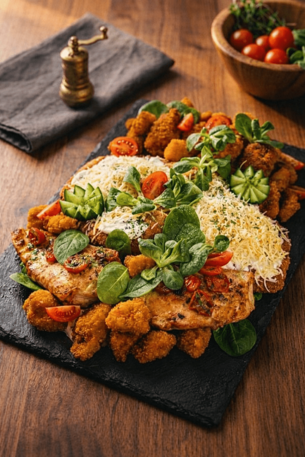 Ha egy igazán tartalmas családi bőségtálat keresel, a Családi Lakoma ideális választás. A tál ropogós rántott húsokat, csirkemell falatokat és többféle köretet tartalmaz, így tökéletes családi ebédhez vagy vendégváráshoz.
