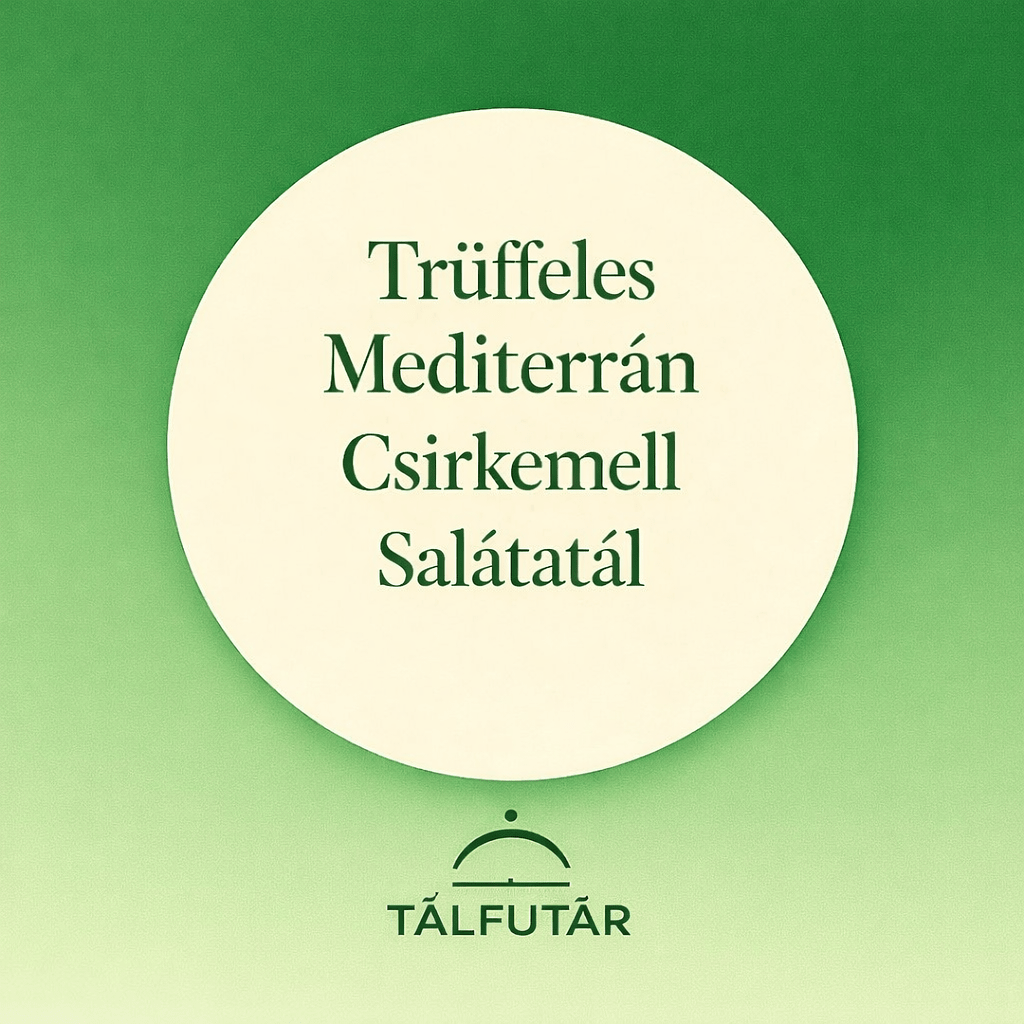 A Tálfutár Trüffeles Mediterrán Csirkemell Salátája friss, ropogós jégsaláta-alapra épül, rukkolával, koktélparadicsommal, kaliforniai paprikával, uborkával, lilahagymával és olívabogyóval.